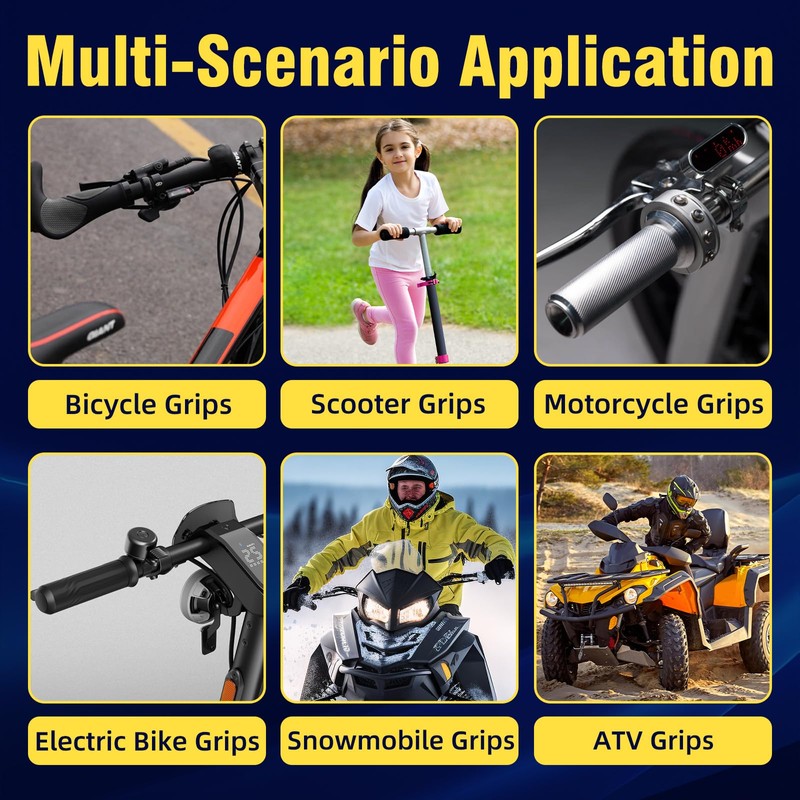 - 【Multi-Scenario Application】The grip glue motorcycle can easily repair handlebars of different models and is very suitable for motorcycle grips, ATV handlebar grips, electric bicycle handlebars, snowmobile handlebars and bicycle handlebars. This handlebar grip glue can be used in multiple scenarios on different material surfaces such as metal, rubber, plastic, and composite materials to firmly bond