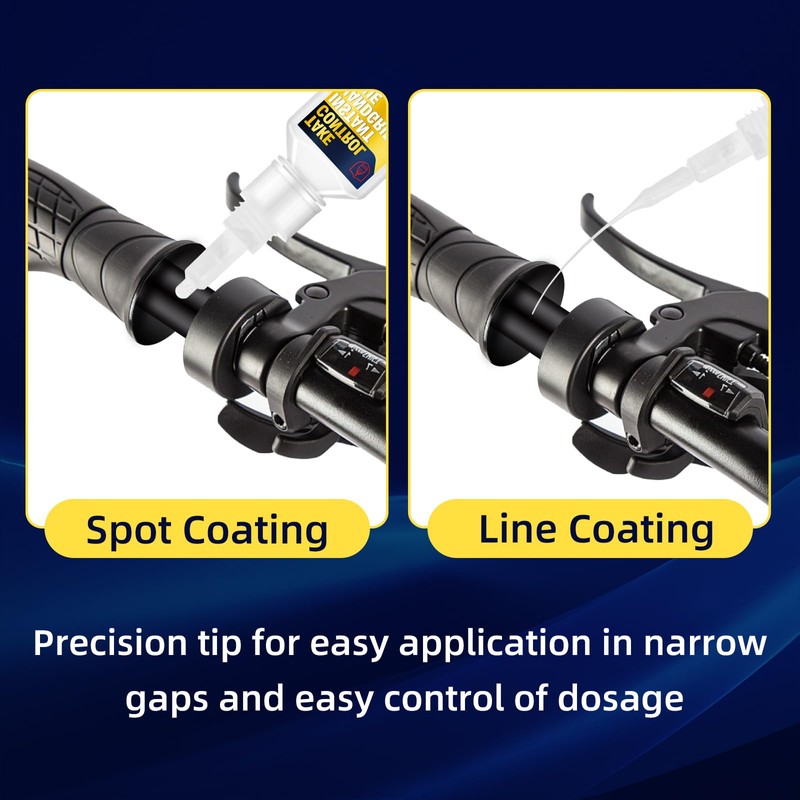 3.This handlebar grip glue is equipped with a precision tip applicator, which allows you to easily control the amount and apply it accurately. In narrow handlebar gaps or hard-to-reach gaps, you can flexibly apply dots or lines as needed. The grip glue is widely used in motorcycle handlebars, bicycle handlebars or off-road vehicle handlebars to meet your different needs.
