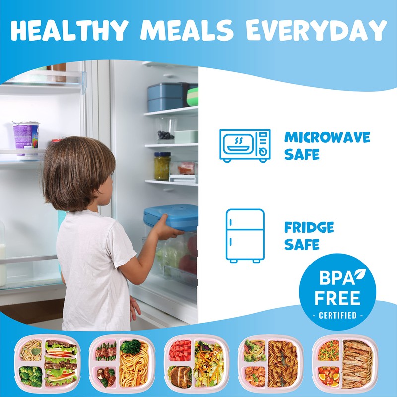 • VERSATILE MEAL - Use the bento kids lunch box with dividers for school, daycare, practice, or at the park! Pack a full balanced meal, and add a snack and a dessert in the specially designed compartments.