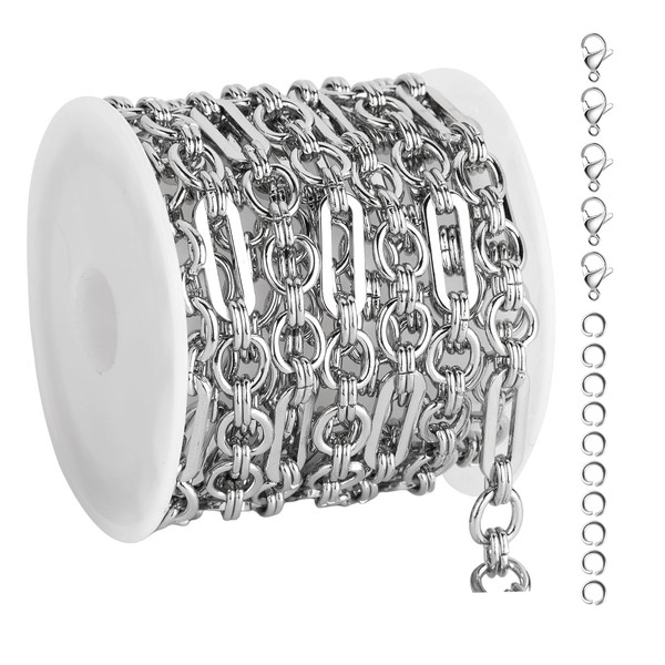 UMAOKANG Stainless Steel Paperclip Chain for Jewelry Making Paper Clip Link Chain on Spool with Lobster Clasps and Jump Rings