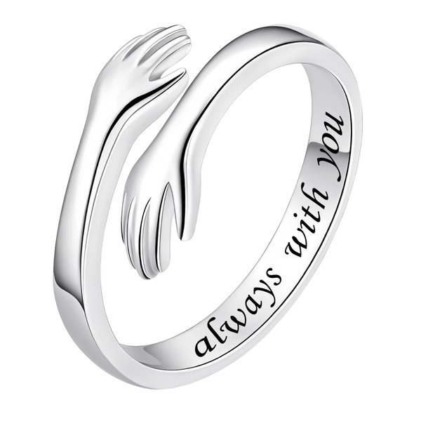 Umarmung Ring für Damen, 925 Sterling Silber Ringe Always with You Versprechensringe Verstellbare Fingerring Stapelbare Freundschaftsringe Schmuckgeschenke