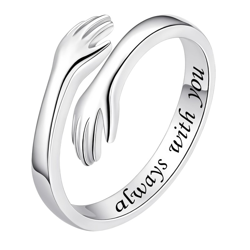 - Neuartiges Design: Die Form des Rings ist ein Paar umarmender Hände. Umarmung ist ein Symbol für Trost, Ermutigung, Liebe und Schutz. In den Ring ist außerdem die Aufschrift „always with you“ eingraviert, die Wärme vermitteln und Liebe ausdrücken kann.