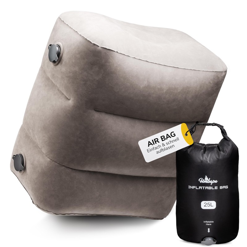 UMBAPA Inflatable Footrest in Warm Grey | Your Ideal Companion for Long Travels. Extremely Durable and Easy to Use. With Practical Inflation Bag. Comfortable and Luxurious Travel