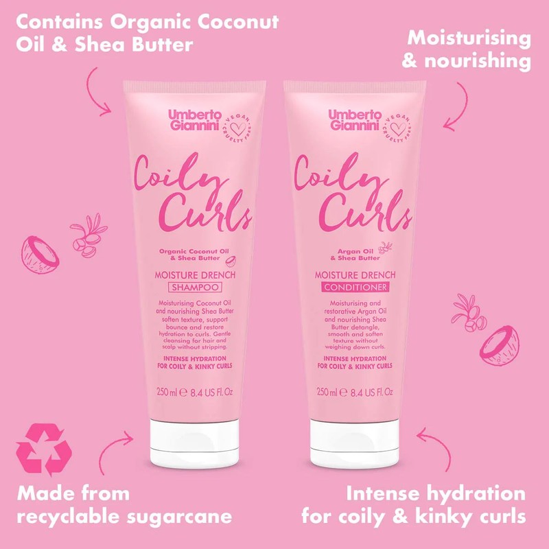 The Umberto Giannini Coily Curls Moisture Shampoo is your go-to for juicy, hydrated curls! This sulphate-free shampoo is specially formulated for coily and kinky curls that need some extra love. Its gentle formula cleanses your hair without stripping natural oils, leaving your curls clean and hydrated.