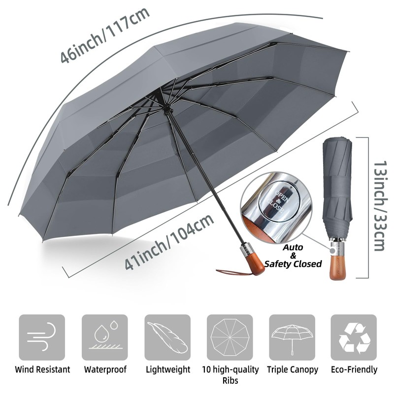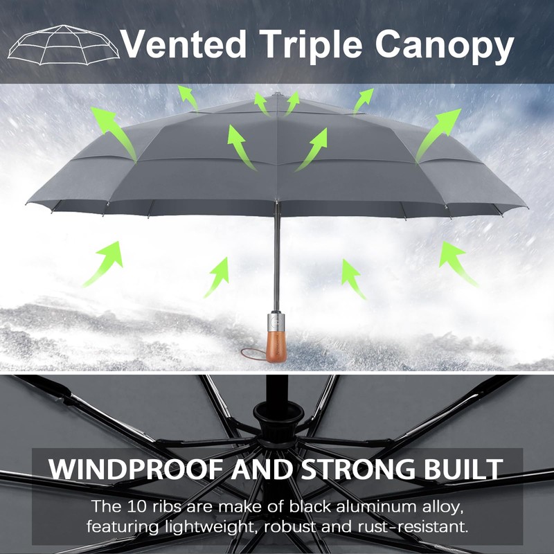 Umbrellas For Rain Windproof - Triple Canopy Large Golf Umbrella, Automatic Open & Close Compact Umbrellas - Portable Umbrellas for BackPack Car with 10 Strong Reinforced Fiberglass Ribs