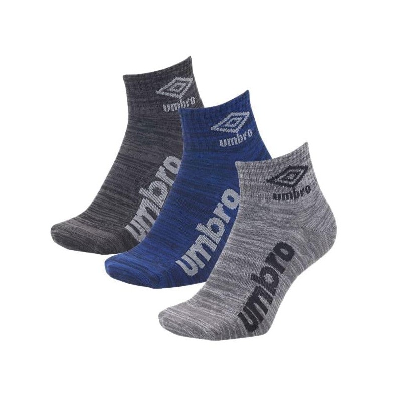 Umbro Socks, Short Socks, Training Design, Set of 3, Heathered Pattern, Cotton Blend, Short Length, Men's, Women's, Junior, Unisex, MBNG (UUAVJB03)
