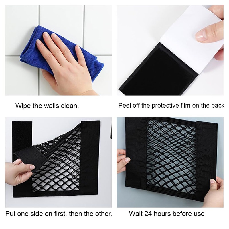 - Self-adhesive design: the bin bag holder has self-adhesive stickers on both sides, so you can easily stick it to the wall, door, back seat of your car or anywhere you want to hang it to make the most of the space. The organised plastic bag can be easily pulled out of the net.