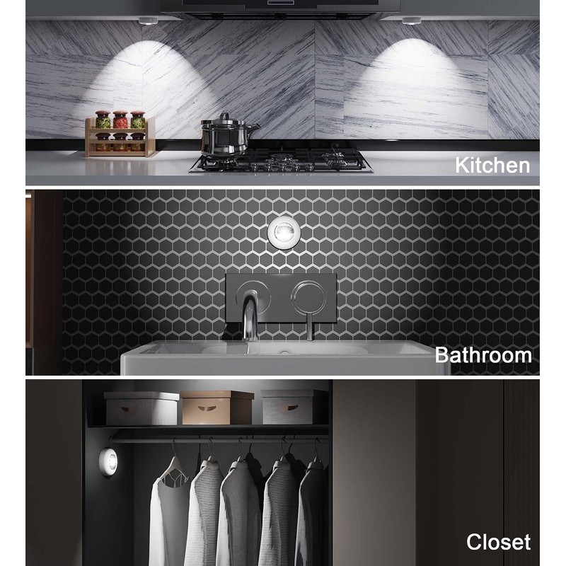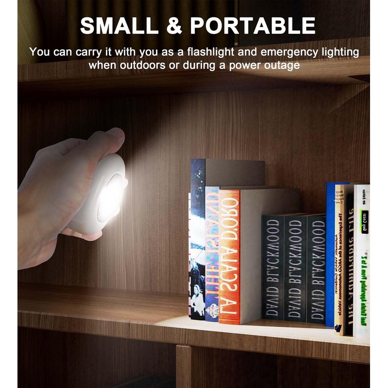 • Compact Size, Wide Application: The 2.7 inch small LED light can meet the lighting needs of various spaces without having to consider power and socket issues, and without damaging walls and furniture. Suitable for closets, cabinets, wardrobes, kitchens, bedrooms, bathrooms, classrooms, laundry areas, corridors, stairs, bedside tables, drawers, toy houses, safes, etc.