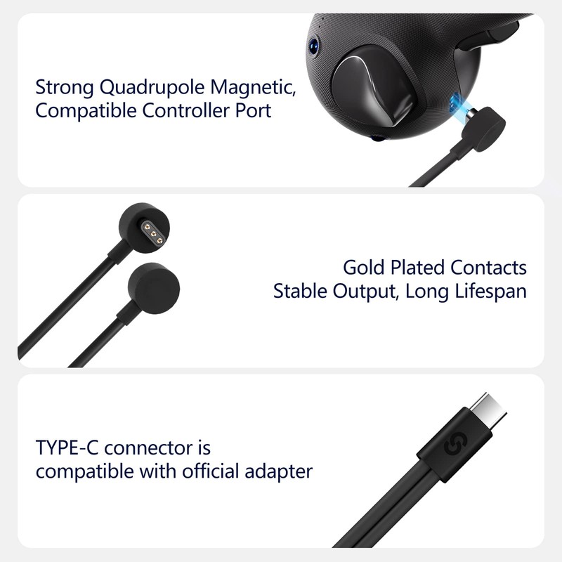 - Space Optimization: Exclusive design 2-in-1 Charging Cable for Meta Quest Pro Controllers ,TYPE-C connector is compatible with office adapter .The 2-in-1 charging cable reduces the need for separate cables, helping to keep the charging area neat and organized.