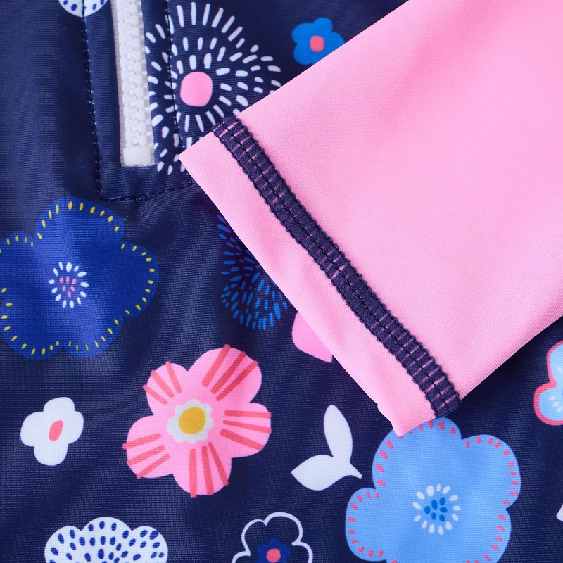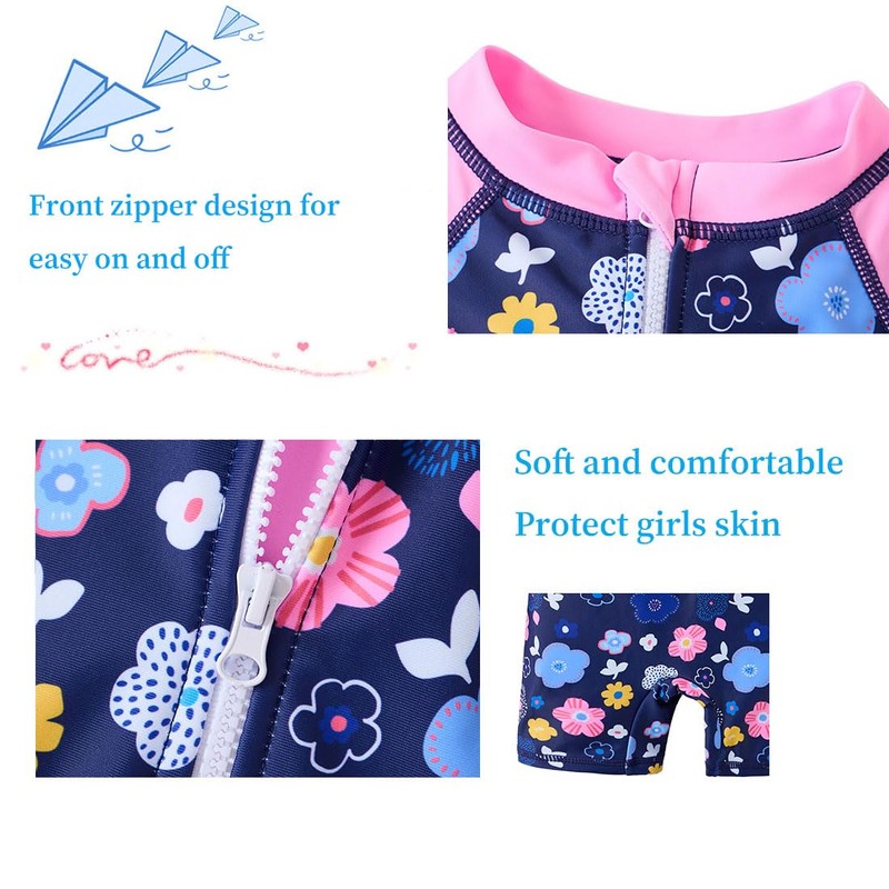 - Girls Rash Guard Swimsuit Features:Classic slim fitting girl long sleeved rash protection, very comfortable. Front zipper design for easy entry and exit. Make girls more fashionable