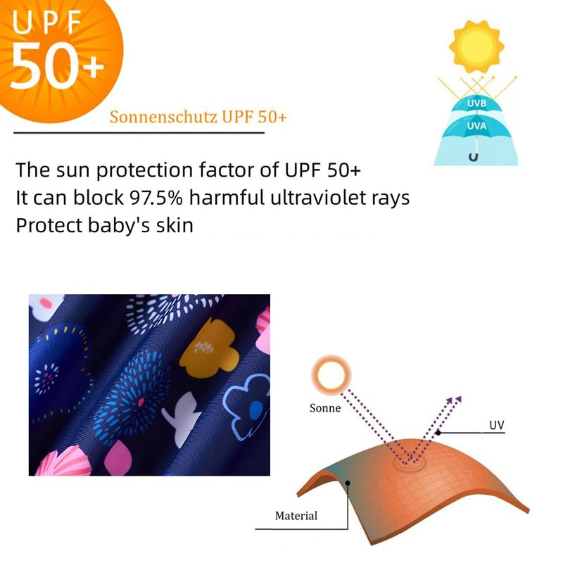 - Girls Long sleeved Swimsuit: This girl's swimsuit features a long sleeved high neck design, providing the best sun protection effect. Four-way stretch and shape memory