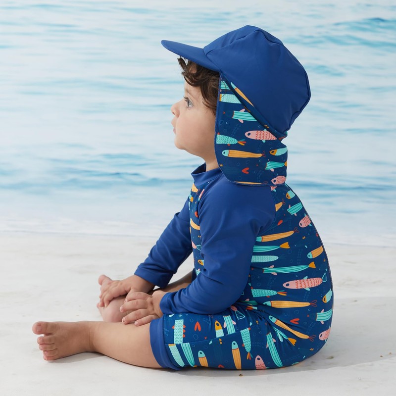 - FULL BODY AND BOTTOM COVERAGE: This one-piece swimsuit for boys provides all-day, full-coverage, UPF 50+ sun protection without having to apply sunscreen to baby's delicate skin