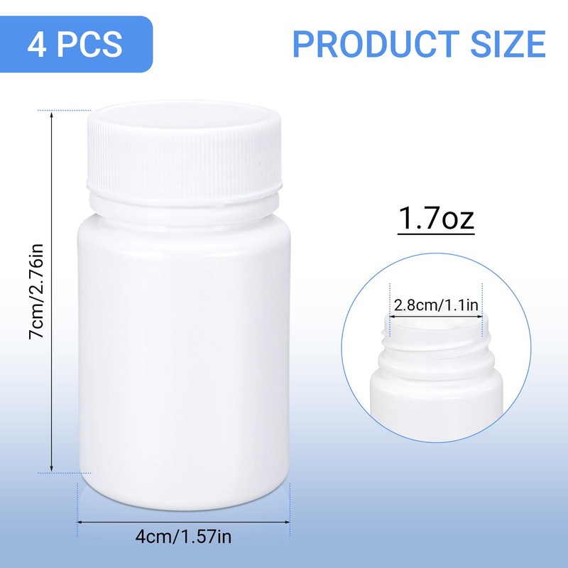 UMETASS UMETASS White Pill Bottle, Empty Medicine Bottles with Screw Caps for Pills Capsules Vitamins, Food Grade Plastic Medicine Containers with Labels for Travel (1.7oz/50ml, 4 Pcs)