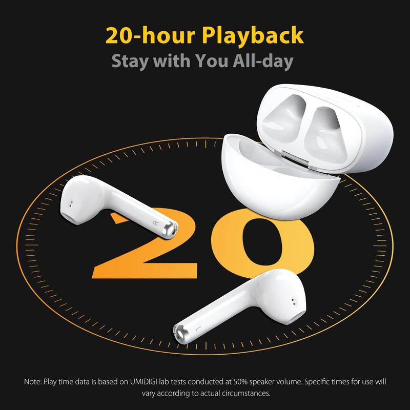- 【Crystal Clear Calls】Equipped with an environmental noise cancellation algorithm,UMIDIGI AirBuds can eliminate the background noise, no matter if it is in a busy office or city traffic, there is no need to increase the volume specially, ensuring that your voice is transmitted perfectly in calls.