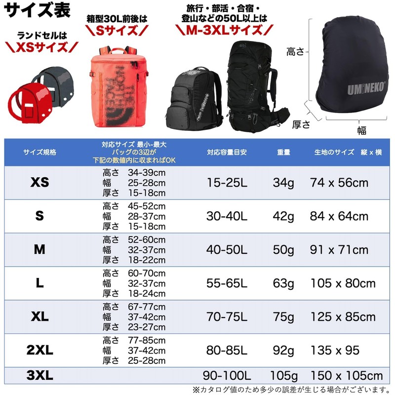 Umineko Power Rain Shell Backpack Cover, Rain Cover, With Locking Belt, Rain Cover, Waterproof Cover, Backpack Cover, School Bag, Box-type Backpack, Large, Smaller, Smaller, Large Rucksack, Happy