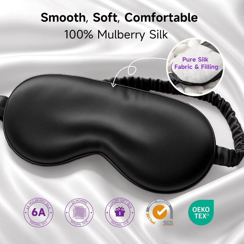 - 100% Pure Silk: Crafted from 22 Momme, 6A-grade silk fabric and filling — the highest quality in the industry,our mulberry silk eye mask offers you ultra and Cloud-Like Comfort
