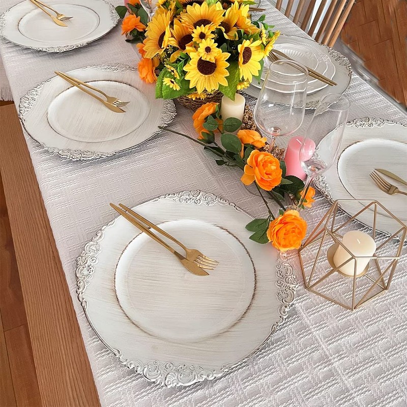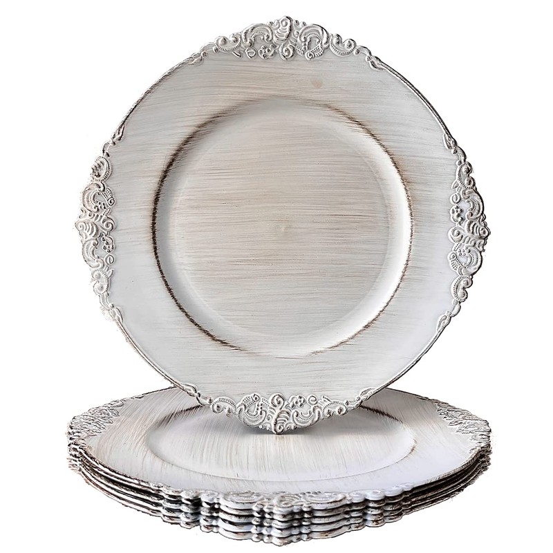 Umisriro Antique White Charger Plates, 13 Inch Embossed Chargers for Dinner Plates. Set of 6 Plastic Charger for Wedding, Party,Elegant Tableware Chargers Decoration.