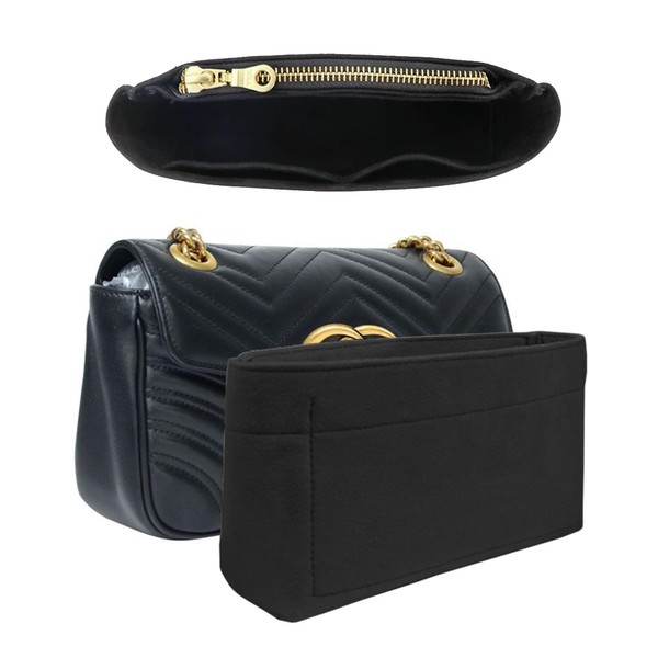 - Material: Plush Fabric Purse Organizer with High quality and New Materials are made of Soft and pliable, Lightweight Felt fabric. The Zipper of the organizer are made of high quality metal,Durable, Fashion and smoother. Bag divider organizer inserts 4 lines of reinforcement stitching more sturdy. If it is not the GG Marmont Mini Matelasse, buy it carefully, the size is not very suitable.