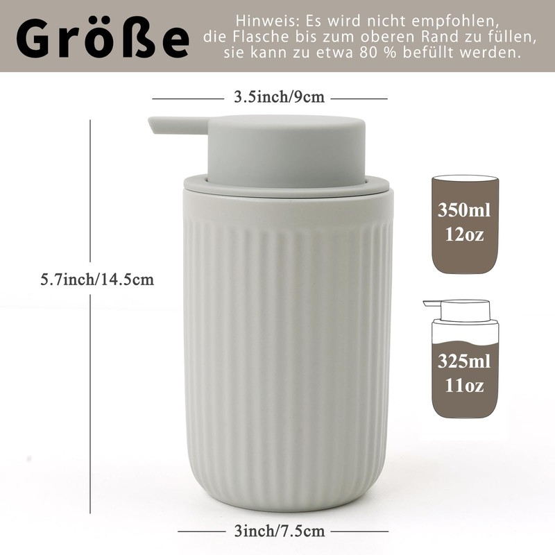 Umlaca Soap Dispenser, Refillable Ceramic Soap Dispenser, 350 ml, Large Pump Head is Easy to Press, Suitable for Kitchen, Bathroom (Stripes Grey, Foam Soap Dispenser)