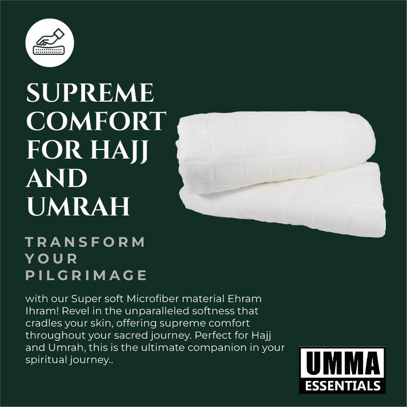 - ✅ EXPERIENCE ULTIMATE COMFORT- Absolutely a Pilgrimage Essential: Transform your pilgrimage with our Super Soft Microfiber Ehram Ihram from UMMA ESSENTIALS that feels like a gentle hug, wrapping you in unmatched comfort. Perfect for Hajj and Umrah for your holy journey to Mecca.