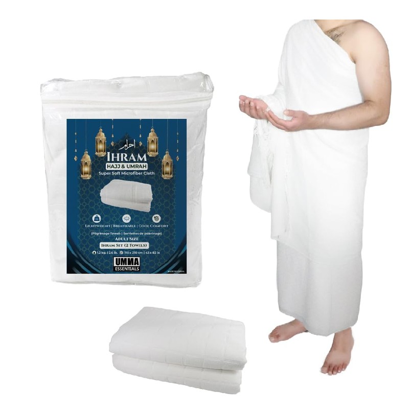 Welcome to UMMA ESSENTIALS, where your comfort is our top priority. Our Hajj/Umrah Pilgrimage Towels are crafted from the finest Super Soft Microfiber Cloth, ensuring your sacred journey is both comfortable and memorable. Designed to enhance your spiritual experience, our lightweight and odor-free (unscented) Ihram/Ehram will transform the way you approach your pilgrimage.
