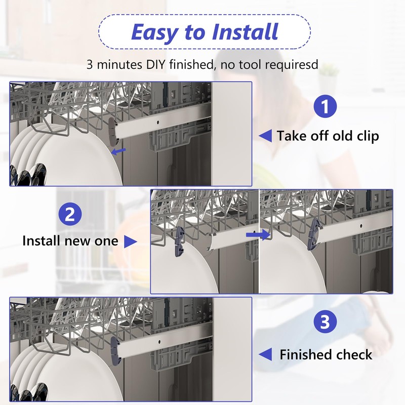 - Important Clip Replacement: Dishwasher stop clip is a small but important component in a dishwasher that helps to secure the dish rack in place, prevents the upper dishrack from sliding completely off the slide rail, you no longer need to carefully open your dishwasher from now on.