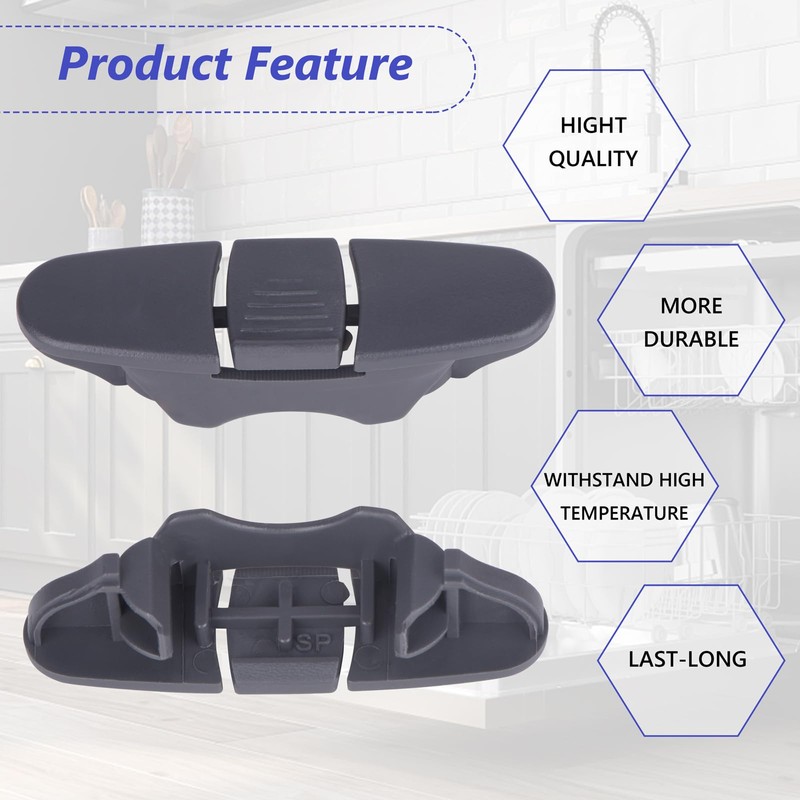 - Package Include: You will get 2 pieces of dishwasher rack stop replacement in gray color. Using our dishwasher dishrack slide rail stop to replace worn out stop clips, keeps your home safe from messy accidents in the kitchen.