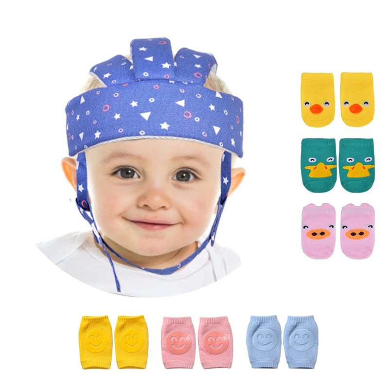 - Package Includes:Include 1 Baby Helmet + 3 Pairs of Baby Knee Pad+3 Pairs Socks for Baby