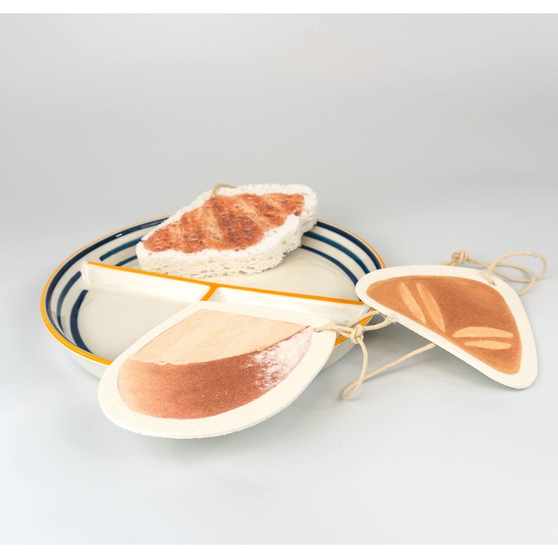UMUA Compressed Sponge 3 Pieces, Quick Dry, Compostable Wood Pulp Sponge, Bath Sponge and Dishwashing Sponge (Bread)