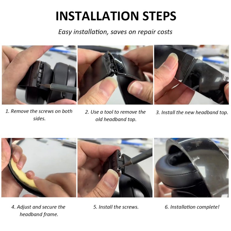Install New Headband: Tighten the screws to secure the headband in place, and enjoy uninterrupted music.