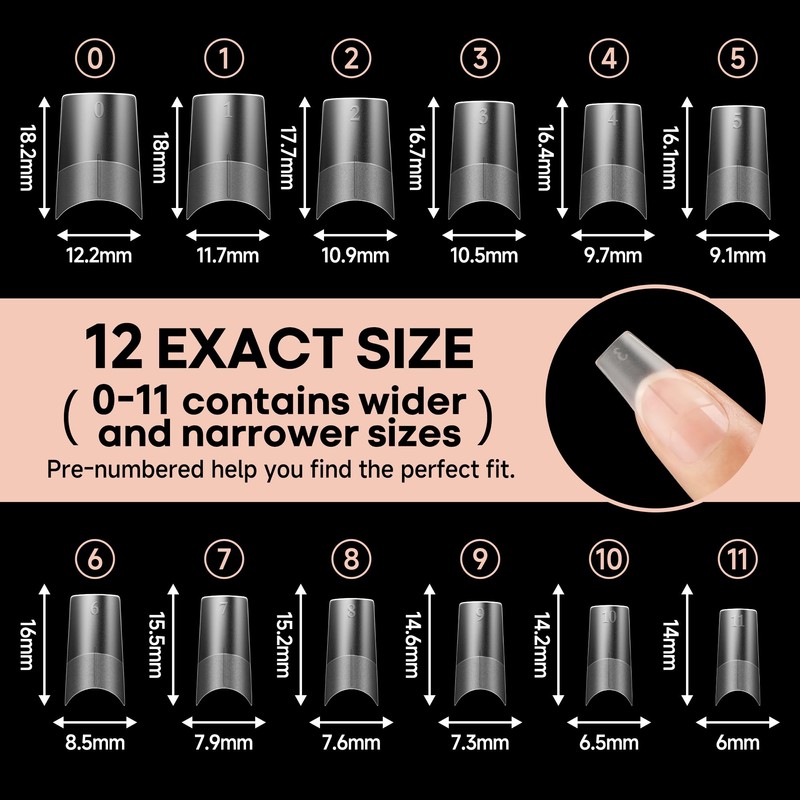 - SUPER NATURAL FIT-No c curve nail tips design is more suitable for the public nail shapes, ultra fit for any curved or flat nails. Professional nail shaping craft creates the ideal length and thickness. Which brings you a more comfort wearing effect, just like your own nails! These fashion medium square tips brings you ultimate comfort and salon-quality enjoyment. Easily get beauty that lasts + days.