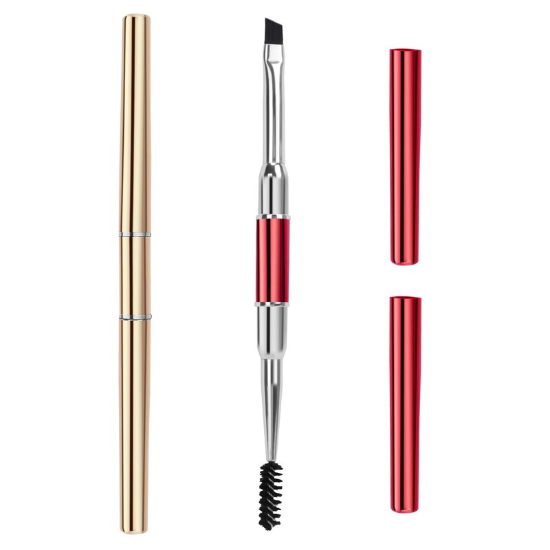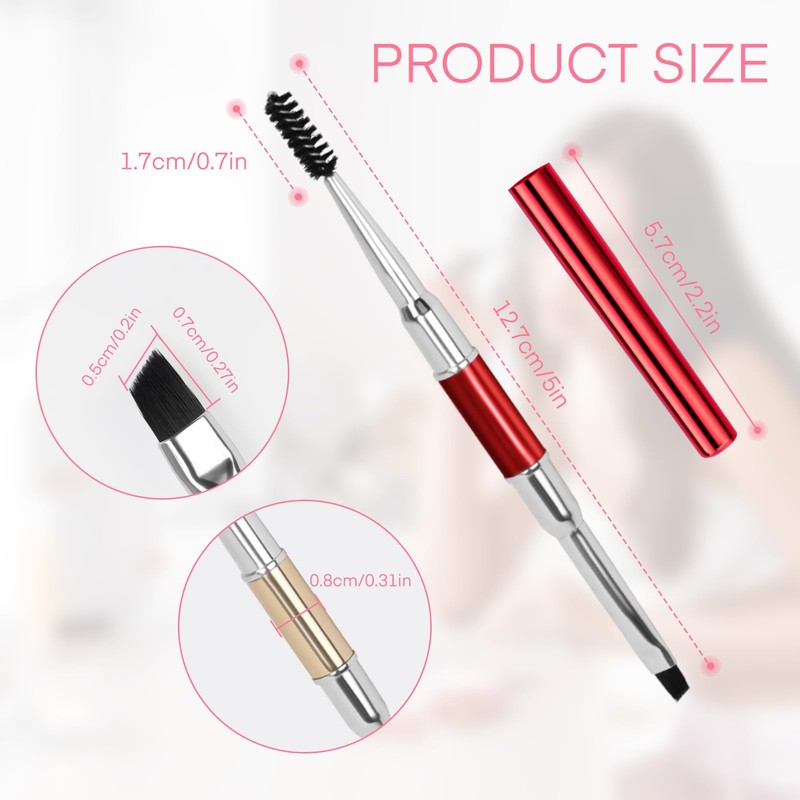 - Dual-ended Design - The package contains two eyebrow brushes with a dual-ended design. One end is an angled brow brush for shaping and filling in brows, while the other end is a spoolie brush to comb through brows and lashes