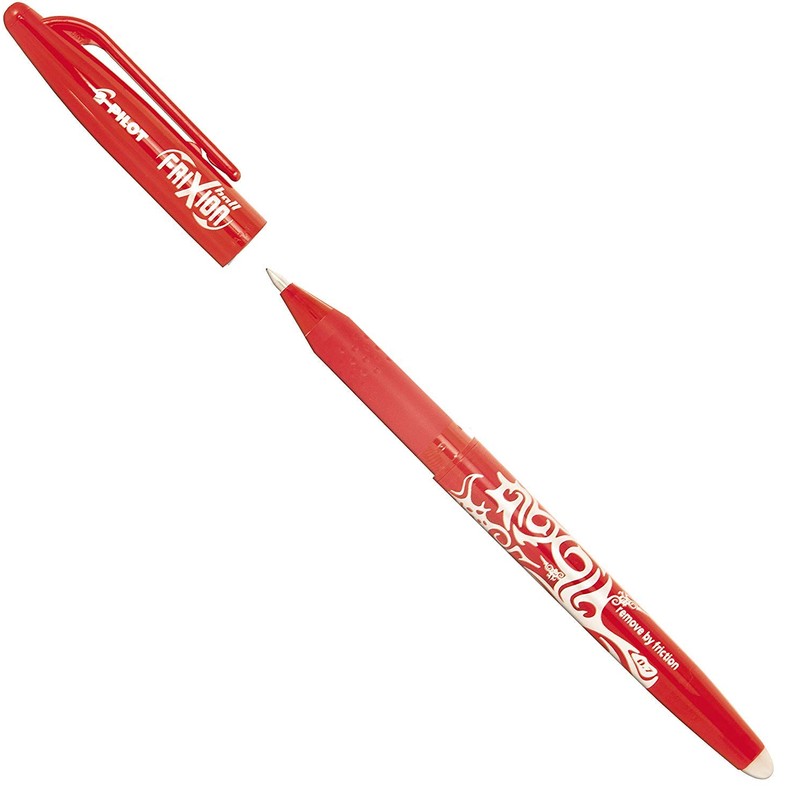 Innovatives Tintenschreiben, Frixion radiert Frixion (Gummispitze am Schaftende) schreiben...reiben...korrigieren.. so schnell und so oft Sie wollen Durch Reibung (reibungswärme >65°C) kann die Schift weggerieben werden und bei Kälte (<15°C) erscheint die Schrift wieder. GehäusefarbeSchriftfarbe Strichstärke: 0,4mm Set bestehend aus 4 Stiften: Basic: 1 x schwarz 1 x blau 1 x rot 1 x hellgrün