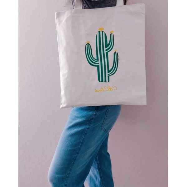 unbrand Canvas tote With Zipper, cute cactus shopping bag 13"×14"