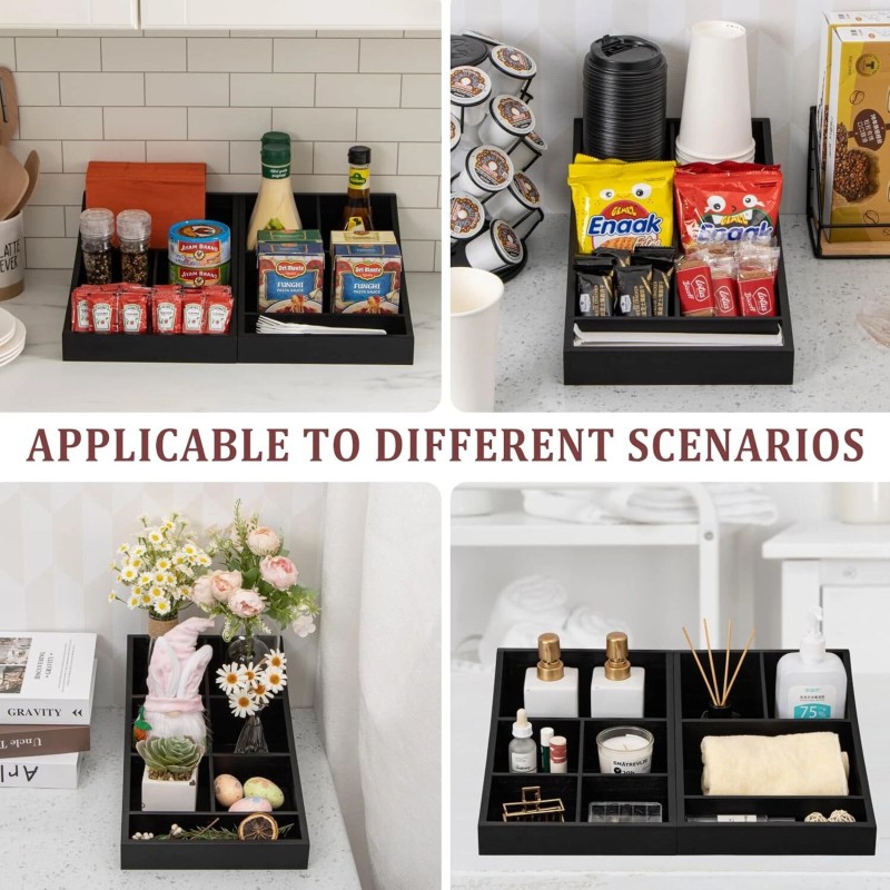 - MULTI-SCENE USE: Designed for versatility, our Coffee Station Organizer serves various purposes. Whether it's on your kitchen counter, office desk, or coffee bar, it effectively organizes your coffee accessories, acting as a functional caddy and condiment tray. Its adaptability ensures seamless integration into different scenes, enhancing both organization and aesthetics.