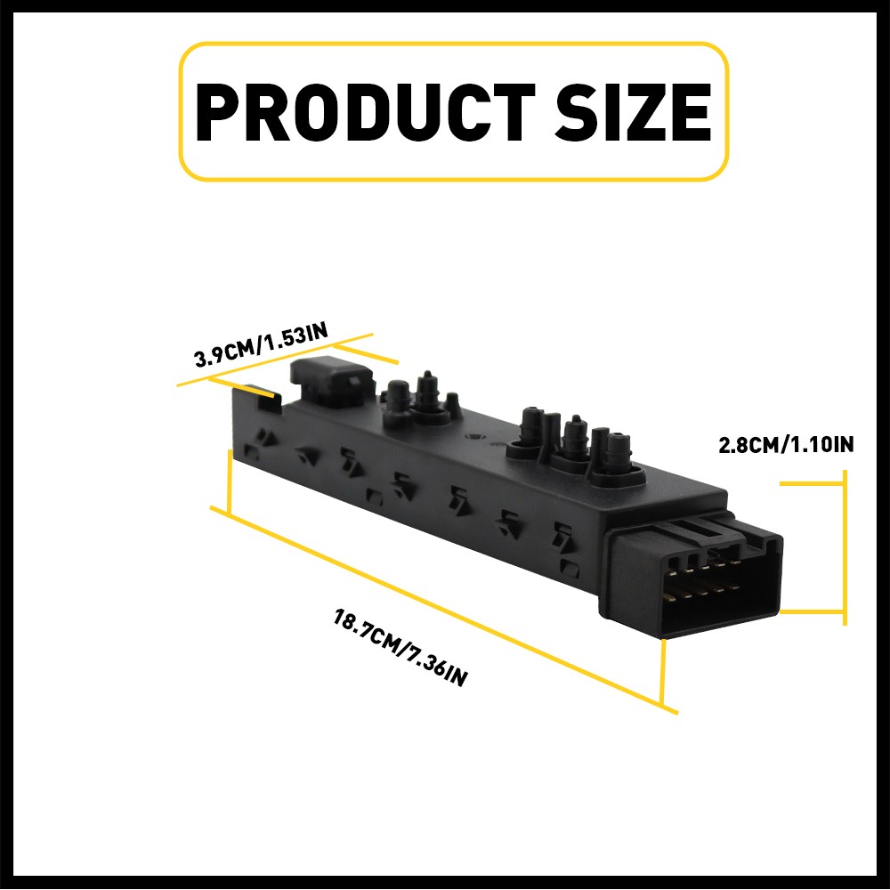 This power seat switch replaces damaged OE units restoring door seat function with 12 pins terminal connector.