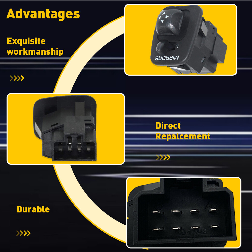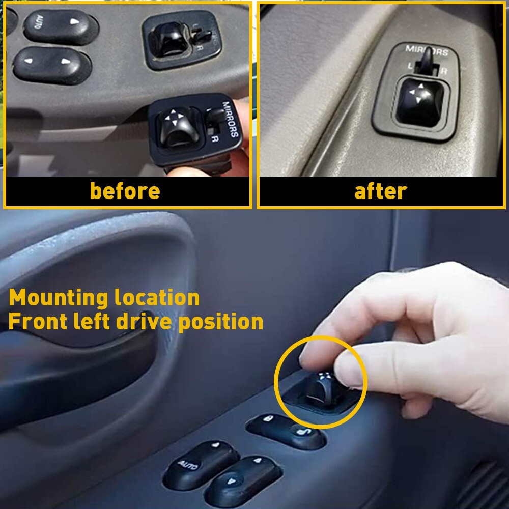 Fit for: 1999-2000 Ford Escort ZX2 S/R Driver Side Mirror Switch 1998-1999 Ford Escort ZX2 Hot Coupe Driver Side Mirror Switch 1998-1999 Ford Escort ZX2 Cool Coupe Driver Side Mirror Switch 2003 Ford Escort Driver Side Mirror Switch 2000-2002 Ford Escort ZX2 Driver Side Mirror Switch 2000-2005 Ford Excursion Driver Side Mirror Switch 1997-1999 Ford Expedition Driver Side Mirror Switch 2004 Ford F150 Heritage Truck Driver Side Mirror Switch 1999-2003 Ford F150 Truck Driver Side Mirror Switch 1999-2005 Ford F250 Super Duty Truck Driver Side Mirror Switch 1998-1999 Ford F250 Truck Driver Side Mirror Switch 1997 Ford F250 Truck Driver Side Mirror Switch 1999-2005 Ford F350 Super Duty Truck Driver Side Mirror Switch 1999-2005 Ford F450 Truck Driver Side Mirror Switch 1999-2005 Ford F550 Truck Driver Side Mirror Switch 2002-2005 Ford Thunderbird Driver Side Mirror Switch 2001-2003 Ford Windstar Driver Side Mirror Switch