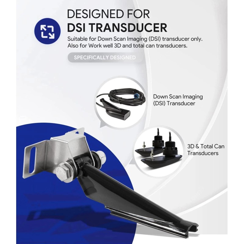 * Designed for DSI Transducer: Specially designed for Down Scan Imaging (DSI) transducer only. Work well with 3D and total can transducers which truly support the sensor without letting go of any fish. Helpful skimmer transducer mount kit helps you win in fishing tournaments with ease.