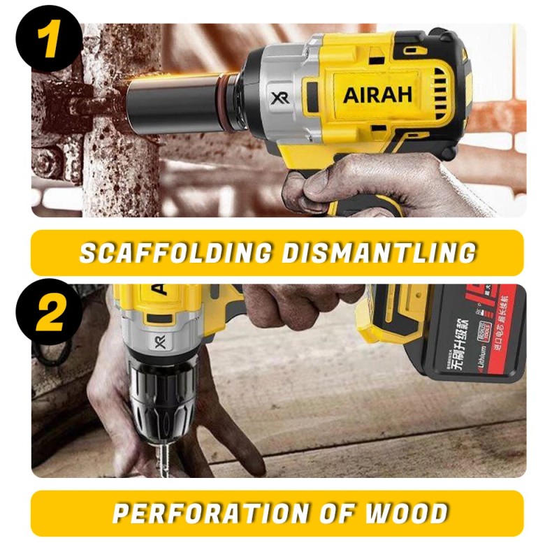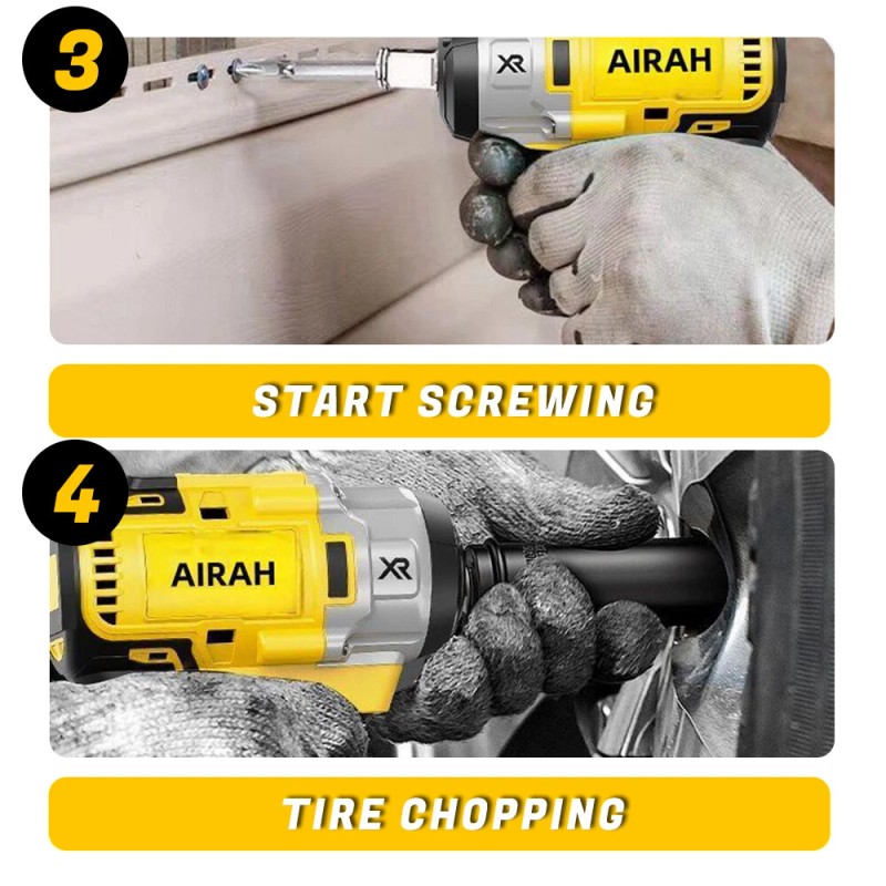 Impact wrench: This cordless 21 volt lithium ion 1/2 inch square anvil automatic impact wrench allows you to tighten or loosen various nuts and bolts for home construction and construction tripods, and is widely used in daily indoor or outdoor.