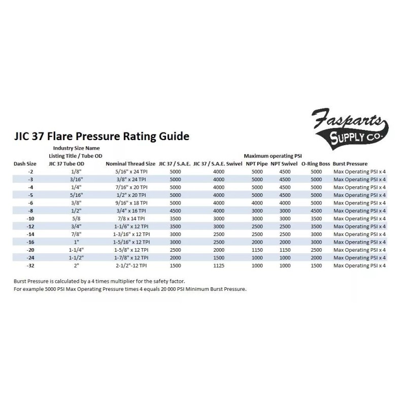 Dash Size: -4 Tube OD: 1/4" Jic 37 / Sae 37 Male (Actual Nominal Thread Size 7/16" x 20 Tpi)