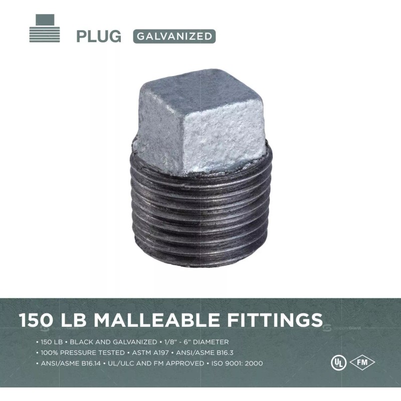 Unbranded 1" MIP Galvanized Malleable Iron Plug with Square Head