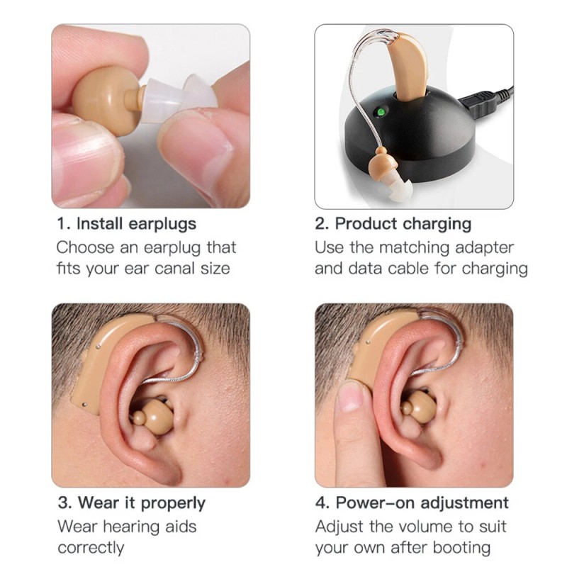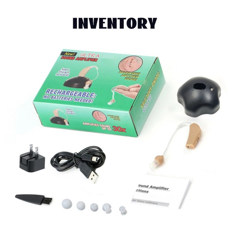 - Items Included: Hearing Aid Case, Hearing Aid Cleaner, Hearing Amplifier, Replacement Earplug, 1 * Brush, USB Cable