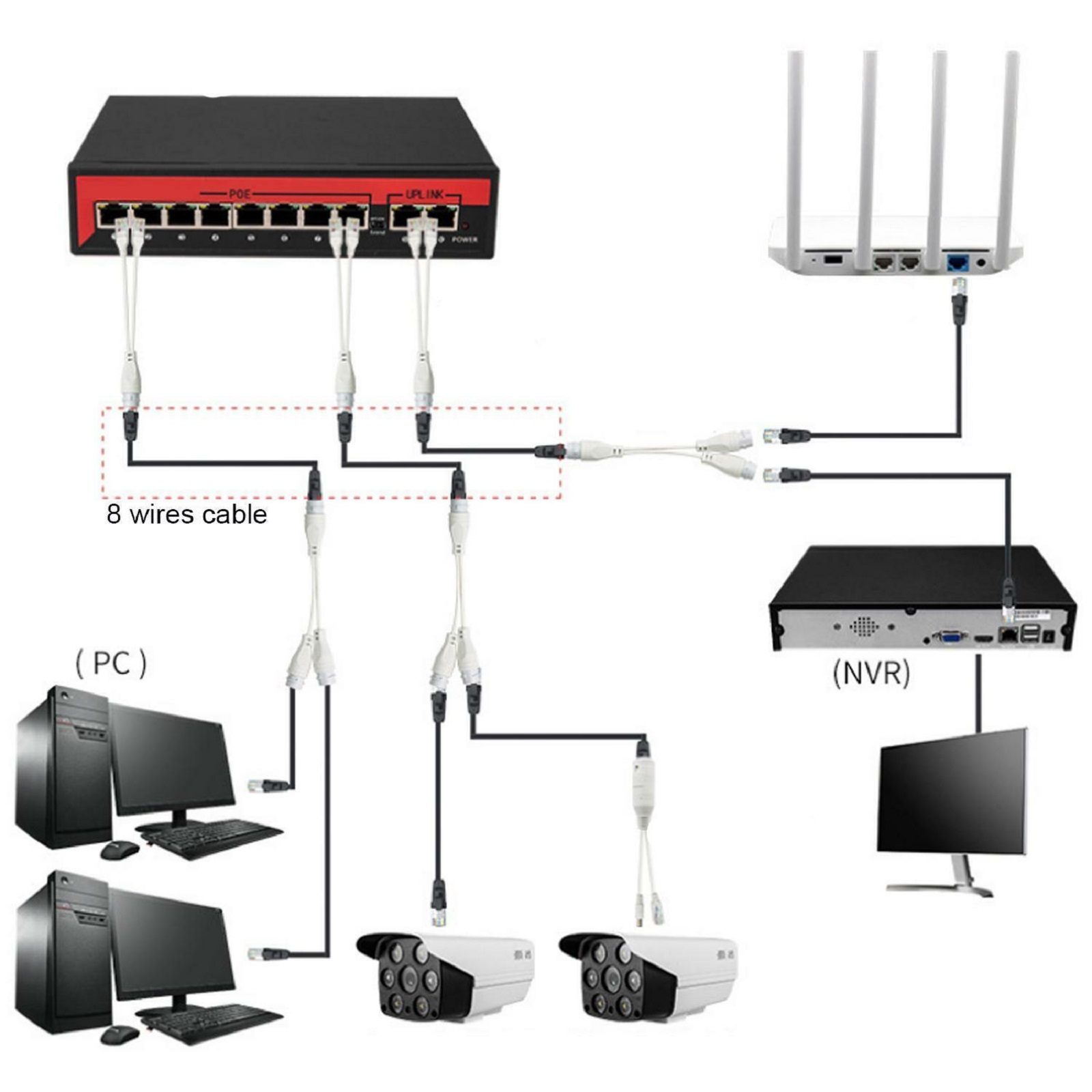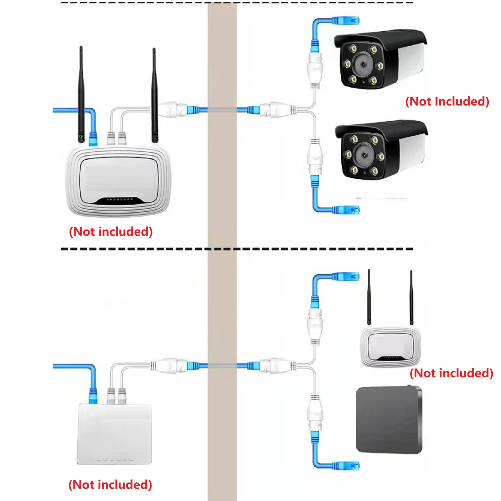 1 to 2 Adapter Network Splitter Poe Switch Connector Rj45 Outdoor Waterproof