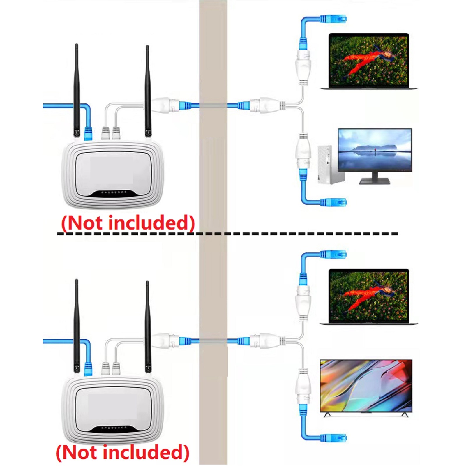 1. RJ45 Ethernet splitter connectors 1 to 2 splitter connectors adapter LAN Eethernet plug connector network socket adapter compatible with cat5 cat6 cable,