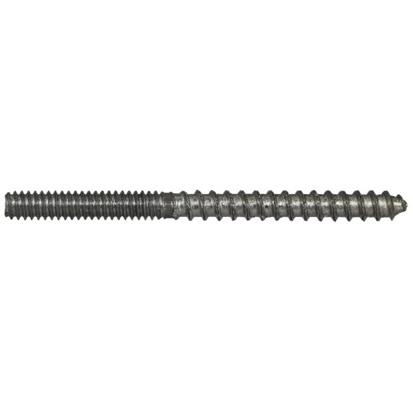 A hanger bolt is a headless fastener that has machine screw threads on one end and self-tapping threads on the other designed to be driven into wood or another soft substrate. Often used for mounting legs on tables.