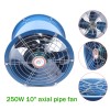 10" 250W Axial Flow Fan Cylinder Pipe Fan Exhaust Fan Silent Ball Bearing 110V