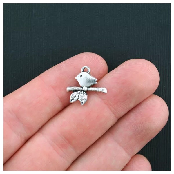 Unbranded 10 Bird Charms Antique Silver Tone Sitting on a Branch - SC1519