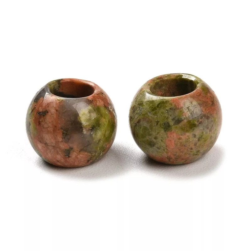 Unbranded 10 Green Gemstone Natural Stone Round Beads - Unakite - 12mm - Large Hole