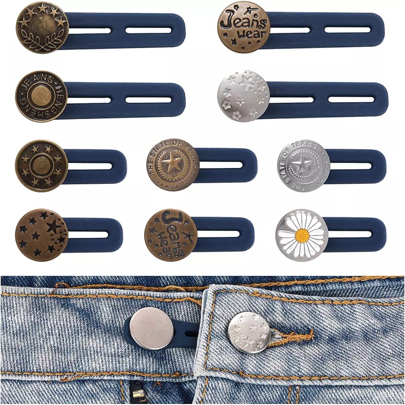- [Make Your Waist Comfortable] Jeans Extender Buttons needn't sew, easily to use and remove, could easily adds an extra 1-2 inch to your pants' waistband, and make your our pants actually fit better around your waist, put on your favorite clothes easily and comfortably