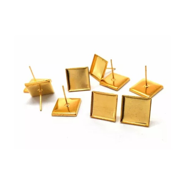 Unbranded 10 pcs. Gold Plated Square Earring Posts Studs Settings Cabochons Tacks 13x13mm